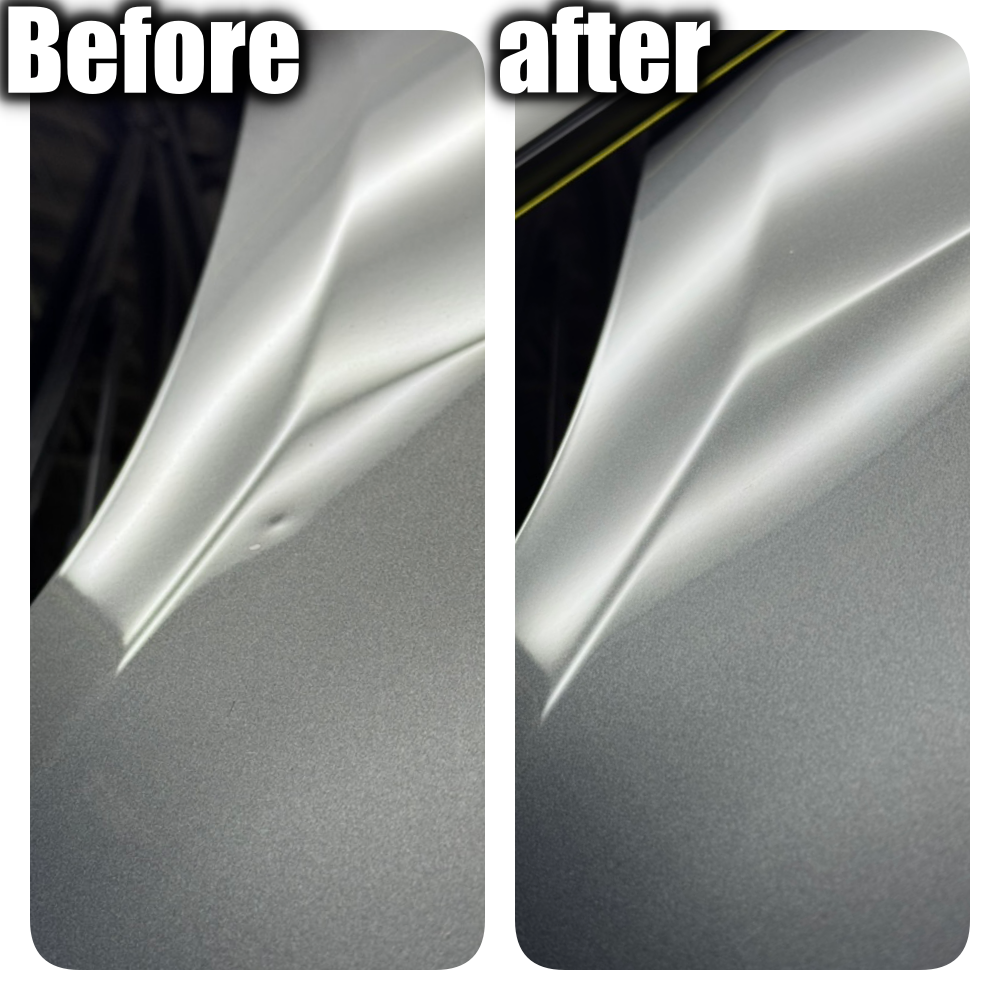 板金塗装でヘコミを直すとなると費用が高くなったり、数日間お車を預けないといけなかったり、再塗装で色ムラになってしまうこともあります。