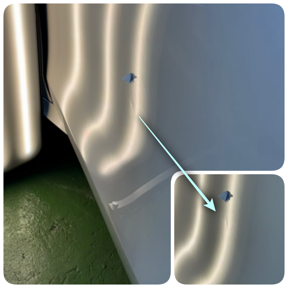 助手席ドアにドアパンチでできたようなヘコミがあるとのご相談です。