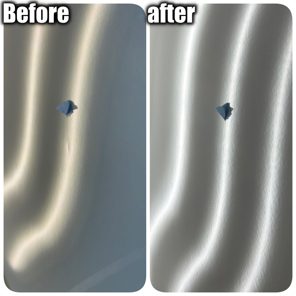 その点、デントリペアならヘコミを裏から押し出す作業だけで直せるので、