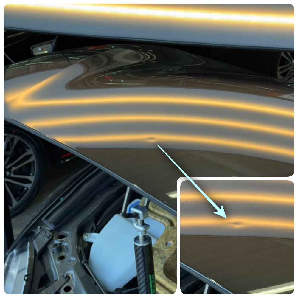 今回は、ロードスターのボンネットにできたヘコミ修理のご依頼。