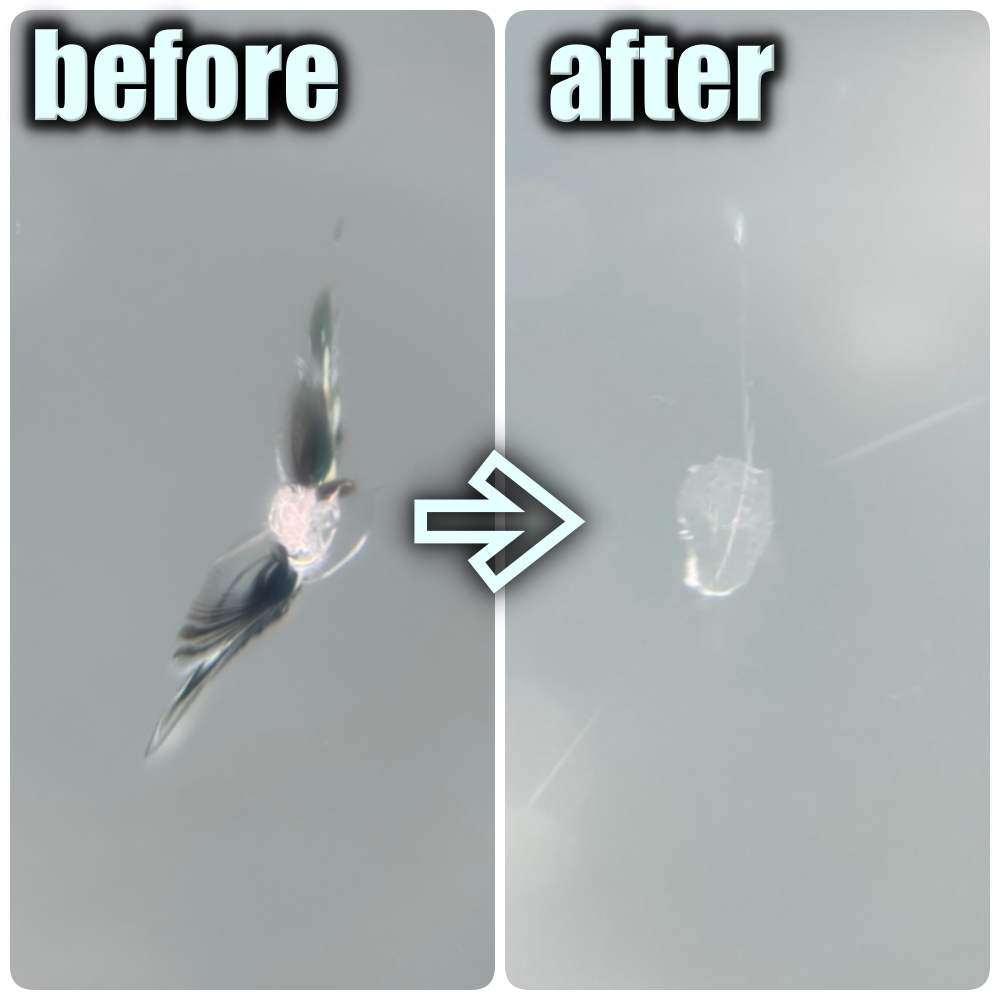 ヒビの伸長リスクが伴う施工のため、事前に状態をしっかりとご説明し、ご納得いただいたうえでガラスリペアにて対応させていただいております。