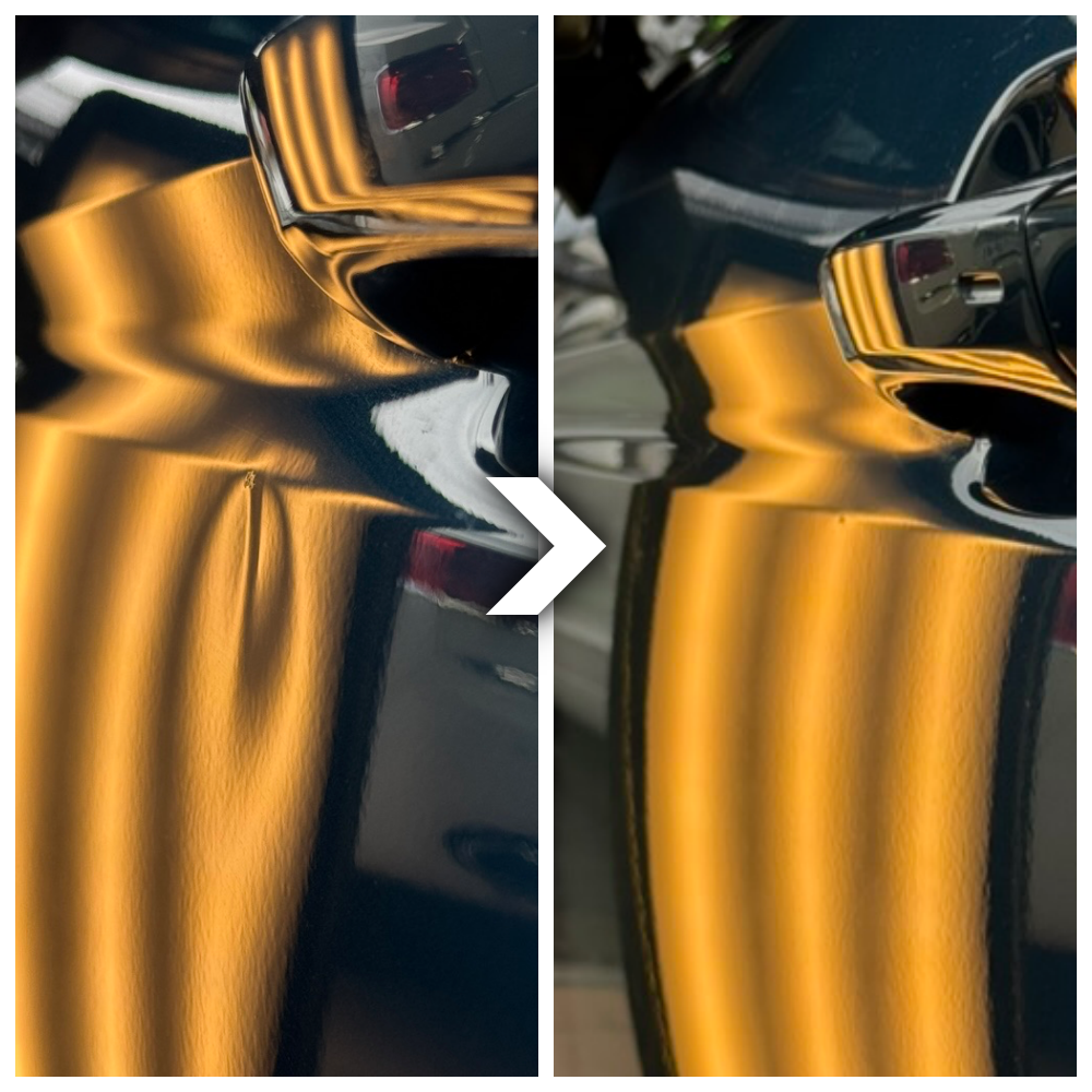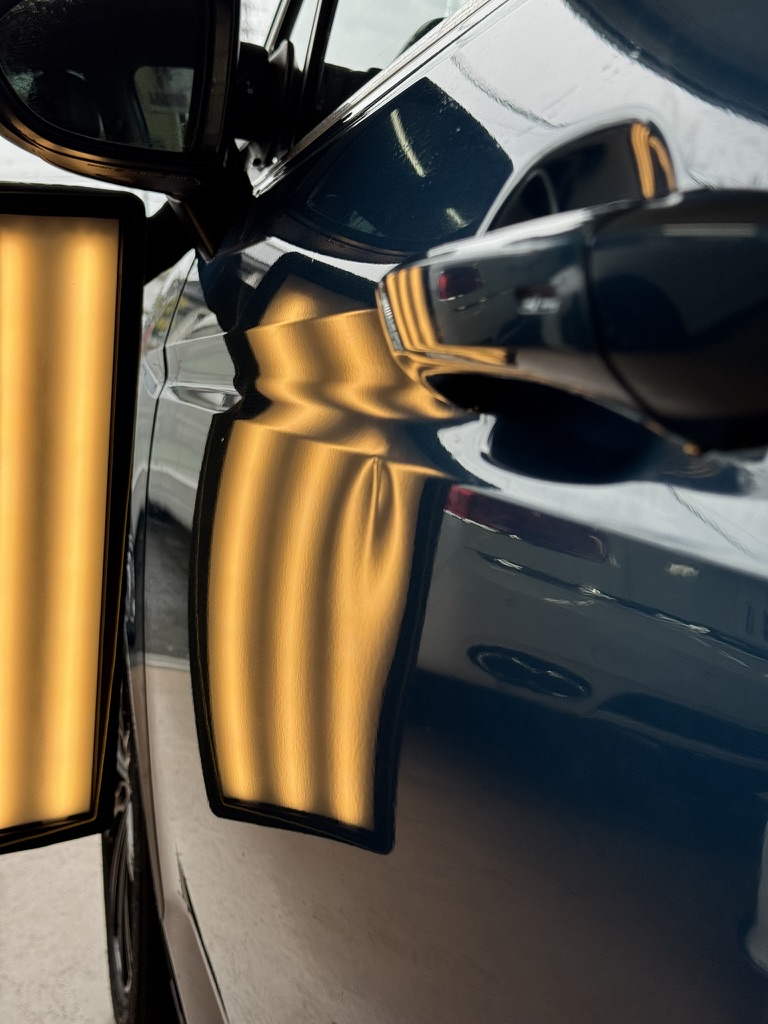 当店では、プレスラインが潰れているような難易度の高いヘコミも追加料金なしで対応しております。安心してご依頼ください。