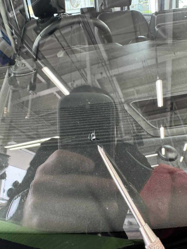 高速道路を走行中に飛び石が当たってしまったそうです。
