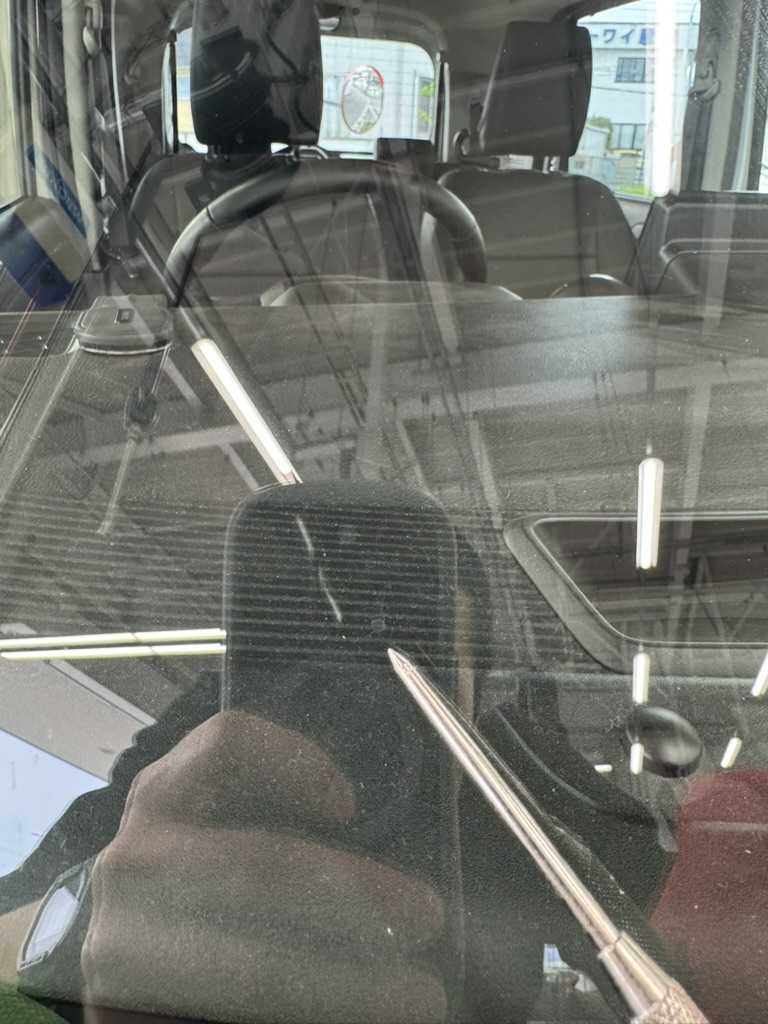 今回は、群馬県高崎市のお客様より、スペーシアギアのフロントガラスの飛び石修理(ガラスリペア)のご依頼です。
