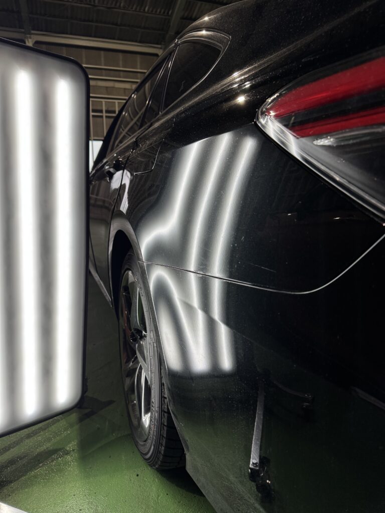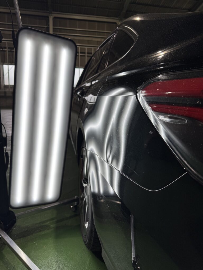 今回は、群馬県伊勢崎市クラウンのオーナー様より、クォーターパネルのヘコミ修理(デントリペア)のご依頼です。