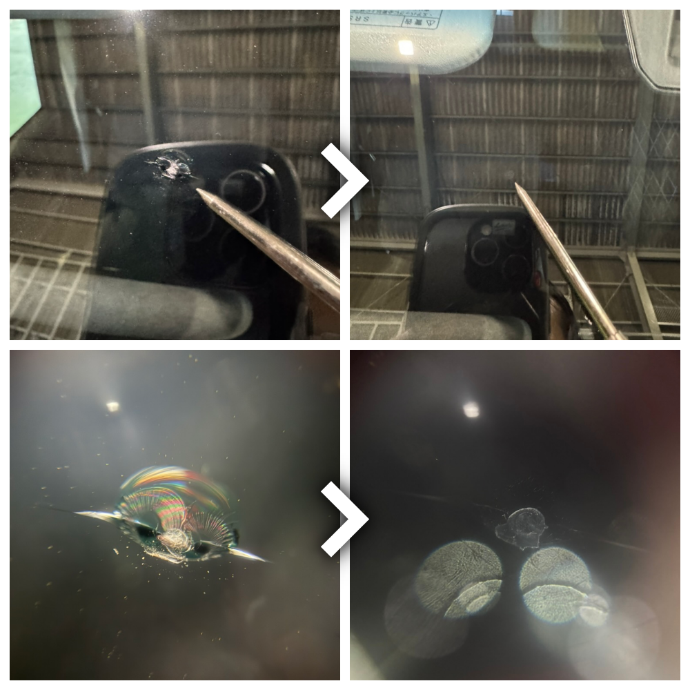 フロントガラスリペアは、ヒビが完全に消える修理ではありません。