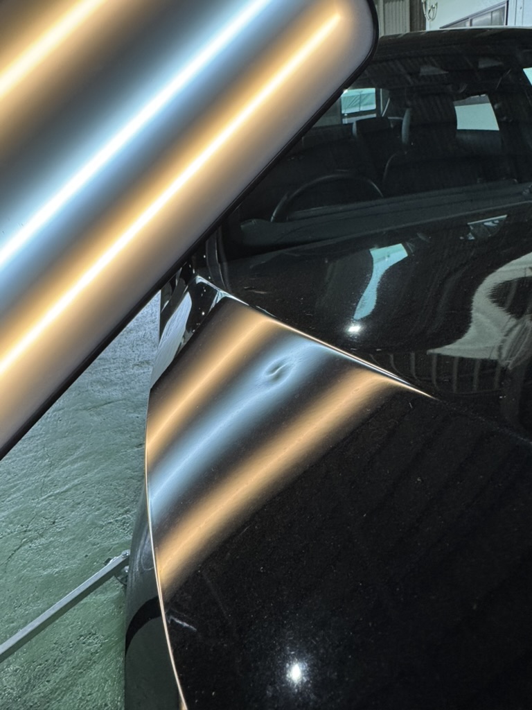 こちらのボンネットは鉄製ではなくアルミニウム製となっており、鉄と比べてデントリペアの難易度が高い素材です。